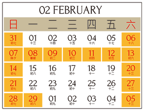 2016 農曆春節假期:02/06 (週六) ~ 02/14 (週日)