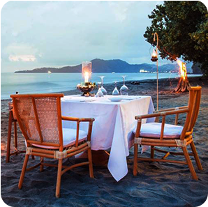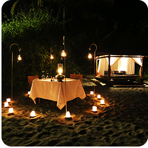 用鮮花及蠟燭打造極為浪漫的用餐體驗。專屬於您的廚師會與您討論希望的美食料理,