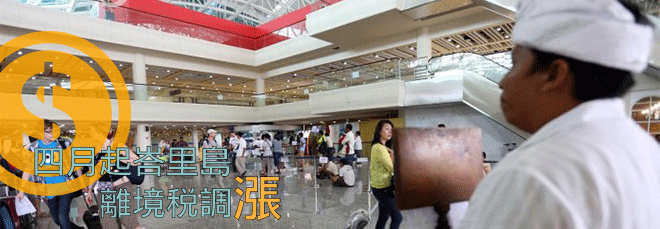 峇里島機場離境稅 國際線 將於2014年四月份起調漲為 每人$200,000 Rp 國內線 將於2014年四月份起調漲為 每人$75,000 Rp 各位計畫前往峇里島的旅客要注意哦 ! |