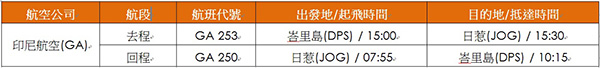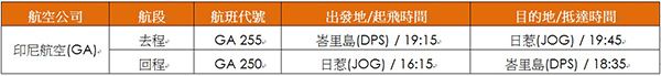 | 日惹慢峇里島一小時,因此峇里島與日惹往返航班實際飛行時間為1.5小時。 |