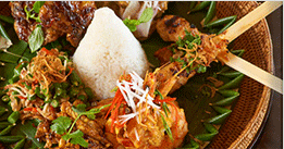 沙嗲晚宴 Satay Evening 約在傍晚的5:30從Amankila往Bale Tirta Sari (聖水發呆亭)出發,Amankila將以一個充滿燭光的田園景觀來為今晚的奇妙體驗揭開序幕。一如Aman提供的的細緻服務,將有專屬廚師及服務人員為您準備滿是峇里島香料的美味盛宴。包括了峇里島式的沙拉(Balinese urab),多種口味的沙爹,最後,伴隨的夕陽美景,以一份美味的甜點畫下完美的句點。 |